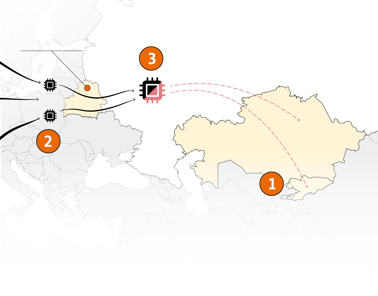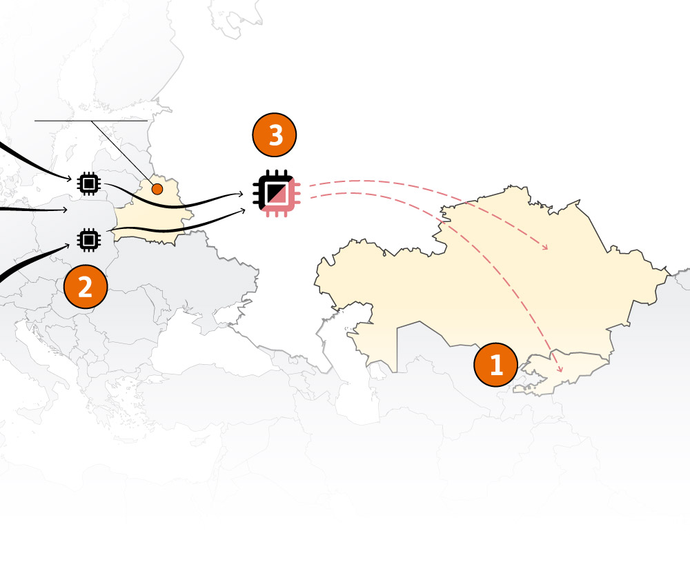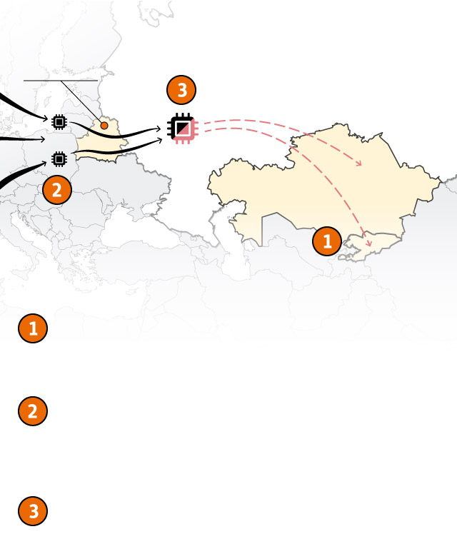 Зарегистрированные в Казахстане и Кыргызстане компании заказывают товары, которые подлежат западному экспортному контролю, чтобы быть ввезенными в Россию. Пункт назначения совпадает с местом происхождения заказа.